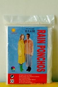 安徽省(无为县太平雨具厂):本公司自1997年建厂以来,引进国内外先进技术,不断对产品进行开发和改进,一直为世界各国客户提供高品质的产品及服务,产品完成到代办发货均是一条龙完成,确保产品质量,也降低了产品成本 ,本厂技术力量雄厚,生产周期短,交货准时,重信誉。产品远销亚洲、非洲、欧洲.、南美洲等国家和地区。在国际上有着很好的声益,本厂一直兼任顾客为第一,薄利多销,不断加大生产能量,广泛招收员工,紧抓质量,以历史悠久,诚信的服务和拥有完整、科学的质量管理体系,获得广大客户的长期信赖与合作。各种一次性雨衣携带方便、价格低廉,既经济又实惠。可根据客户要求定做等等,既方便使用又可为企业及产品做宣传,是雨季最实用的广告宣传载体。颜色、规格多样可选。是旅游,户外大型活动、节日庆典、产品促销等必备产品,其次产品物美价廉,品种齐全,用于各种游乐场,漂流,登山,户外作业,参观赛事,水上活动,商场超市,矿山建筑,渔业农用等多种场合。 主要产品有高中档雨衣,PE一次性雨衣,,EVA一次性雨衣,帽代袖口一次性雨衣,塑料四合扣一次性雨衣,真丝四合扣雨衣,真丝套头雨衣,各种新料一次性雨衣,加大加宽一次性雨衣,PVC磨砂雨衣,一次性套装雨衣,一次性鞋套等,PVC牛筋雨衣,PVC牛筋套装雨衣,海胶雨衣雨披等等。。 本厂拥有一大批各类优秀人才、国内外领先的技术、先进的检测仪器及手段、精良的生产设备及完善的管理体系,竭诚为广大新老客户提供一流的产品及优质的服务,欢迎广大新老客户莅临本厂参观、洽 谈!(1)各种材质套头式雨衣:每款包装简单大方,使用方便,款式多变,帽子有绳子,袖口有皮筋,有的没有。雨衣有薄有厚,纯属一次性雨衣,价格低,包装简单,携带方便。加厚雨衣可以重复使用,价格不等。雨衣都独立包装,有的有彩卡,有的是彩色印刷包装袋,大货每袋装1000件箱装600件等等。 (2)各种材质开衫纽扣式雨衣:每种开衫纽扣雨衣都是有(四粒塑料纽扣),使用方便,有加大加厚型,每件是独立小包装,包装内付有彩卡,大货袋装500件箱装300件,材质有塑料,新料,真丝磨砂还有非一次性纽扣雨衣。有很多可以重复使用,也有高档式的包装。 (3)各种材质套装雨衣:套装雨衣就是分体雨衣,有上衣和裤子,每件都有独立包装,有一次性和非一次性的,一次性的也可以穿好几次,非一次性的就是长久性的。 (4)各种材质鞋套:鞋套有皮筋的,有薄有厚。也有靴套,带皮筋系在小腿上。每款都有独立包装,防污防尘防水,适用于各种场合,如医院,宾馆,商场超市,家庭,漂流河激流勇进等,使用方变简洁。 (1)以上雨衣男女兼用,使用于各种场合,携带方便,多色可选。出口货物均可装箱,雨衣由各种PE、eva.PVC等等面料制作,都采用最新技术生产设备,缝接处防水防漏,无毒无味,超级环保。面料柔软,遇寒冷不变质,不粘水,干爽舒适,防水性强。 (2)本公司产品都有各种尺寸型号可供客户选择,质量好点的雨衣,用后请放于透风处晾干,不要暴晒太久,再折叠可以用很久。 (3)本产品支持支付宝交易,可以混批,大货根据买家要求来安排发货,有意者请最好提前联系订购,产品质量都是经过检查,请放心采购!