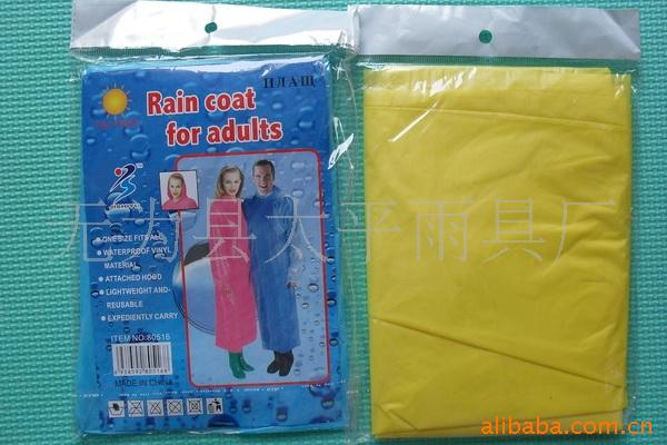 安徽省(无为县太平雨具厂):本公司自1997年建厂以来,引进国内外先进技术,不断对产品进行开发和改进,一直为世界各国客户提供高品质的产品及服务,产品完成到代办发货均是一条龙完成,确保产品质量,也降低了产品成本 ,本厂技术力量雄厚,生产周期短,交货准时,重信誉。产品远销亚洲、非洲、欧洲.、南美洲等国家和地区。在国际上有着很好的声益,本厂一直兼任顾客为第一,薄利多销,不断加大生产能量,广泛招收员工,紧抓质量,以历史悠久,诚信的服务和拥有完整、科学的质量管理体系,获得广大客户的长期信赖与合作。各种一次性雨衣携带方便、价格低廉,既经济又实惠。可根据客户要求定做等等,既方便使用又可为企业及产品做宣传,是雨季最实用的广告宣传载体。颜色、规格多样可选。是旅游,户外大型活动、节日庆典、产品促销等必备产品,其次产品物美价廉,品种齐全,用于各种游乐场,漂流,登山,户外作业,参观赛事,水上活动,商场超市,矿山建筑,渔业农用等多种场合。 主要产品有高中档雨衣,PE一次性雨衣,,EVA一次性雨衣,帽代袖口一次性雨衣,塑料四合扣一次性雨衣,真丝四合扣雨衣,真丝套头雨衣,各种新料一次性雨衣,加大加宽一次性雨衣,PVC磨砂雨衣,一次性套装雨衣,一次性鞋套等,PVC牛筋雨衣,PVC牛筋套装雨衣,海胶雨衣雨披等等。。 本厂拥有一大批各类优秀人才、国内外领先的技术、先进的检测仪器及手段、精良的生产设备及完善的管理体系,竭诚为广大新老客户提供一流的产品及优质的服务,欢迎广大新老客户莅临本厂参观、洽 谈!(1)各种材质套头式雨衣:每款包装简单大方,使用方便,款式多变,帽子有绳子,袖口有皮筋,有的没有。雨衣有薄有厚,纯属一次性雨衣,价格低,包装简单,携带方便。加厚雨衣可以重复使用,价格不等。雨衣都独立包装,有的有彩卡,有的是彩色印刷包装袋,大货袋装1000件箱装600件等等。 (2)各种材质开衫纽扣式雨衣:每种开衫纽扣雨衣都是有(四粒塑料纽扣),使用方便,有加大加厚型,每件是独立小包装,包装内付有彩卡,大货袋装500件箱装300件,材质有塑料,新料,真丝磨砂还有非一次性纽扣雨衣。有很多可以重复使用,也有高档式的包装。 (3)各种材质套装雨衣:套装雨衣就是分体雨衣,有上衣和裤子,每件都有独立包装,有一次性和非一次性的,一次性的也可以穿好几次,非一次性的就是长久性的。 (4)各种材质鞋套:鞋套有皮筋的,有薄有厚。也有靴套,带皮筋系在小腿上。每款都有包装,防污防尘防水,适用于各种场合,如医院,宾馆,商场超市,家庭,漂流河激流勇进等等,使用方便简洁。 (1)以上雨衣男女兼用,用于各种场合,携带方便,多色可选。出口货物均可装箱,雨衣由各种PE、eva.PVC等等面料制作,都采用最新技术生产设备,缝接处防水防漏,无毒无味,超级环保。面料柔软,遇寒冷不变质,不粘水,干爽舒适,防水性强。 (2)本公司产品都有各种尺寸型号可供客户选择,质量好点的用后请透风处晾干,不要暴晒太久,再折叠可以用很久。 (3)本产品支持支付宝交易,可以混批,大货根据买家要求来安排发货,有意者请最好提前联系订购,产品质量都是经过检查,请放心采购!