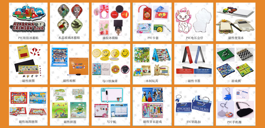 该产品是增添生活情趣,冰箱的饰品、调节气氛的小帮手。新颖实用、时尚精美,广告效果直接,令人印象深刻;还可作吸咐便条用。 我司其他的磁性产品还有:磁性冰箱贴,磁性电话本,磁性拼图,磁性飞镖,磁性可擦写画板、、、、等等。采用高性能环保无毒软磁胶,表面可用多种材质订制企业LOGO,形状逼真精美,实用性与广告性完美结合,为各大中小企业搞商务促销活动、纪念活动量身定做