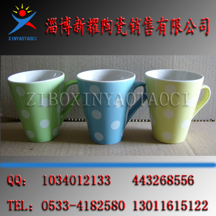 涂层杯厂家供应内彩水杯,外彩水杯,仿搪瓷水杯,清新波点陶瓷杯
