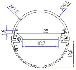 T10铝塑管 | B-8 | 30mm | 1/2铝合金1/2PC罩 | 插件25*1.5MM | 13MM |