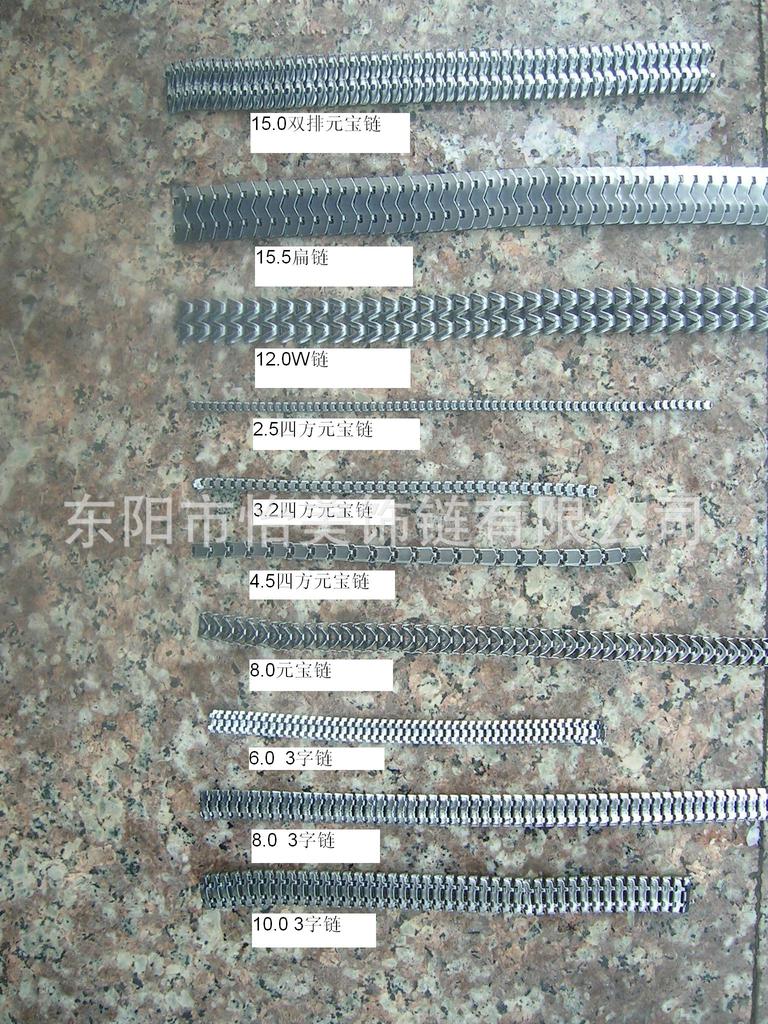 东阳市怡美饰链有限公司为从事饰链生产和销售的民营企业。自1992年创办以来,“团结拼搏 诚信求真 努力开拓 务实发展”十六字经一直为公司文化见解和经营理念。产品有铜、铁、铝及不锈钢制作的饰品链条,共3千余品种,式样如珠链、服饰链、钥匙链、项链、手链、万字链.双仔链,圆环链,斯巴达链,法国绳链,反扭链,子母链,网链,铁皮链,垂扁链,蛇链,饰链配件、金丝链、麻花链,龙虾扣、弹簧扣、钥匙圈、皮带扣,钻石链,波士顿链,蛇链等。可装饰于手提包、工艺品、玩具等多种商品上。