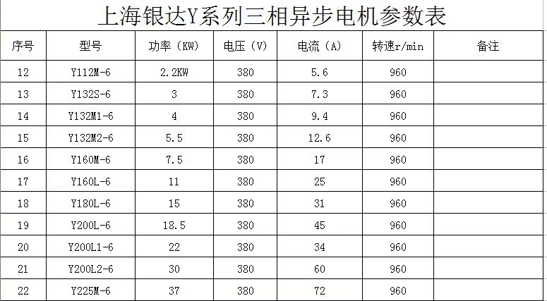 上海银达Y系列三相异步电机Y112M-6-2.2KW电动机6极马达