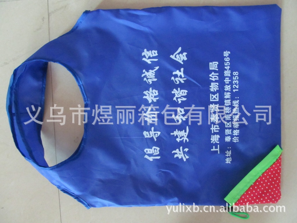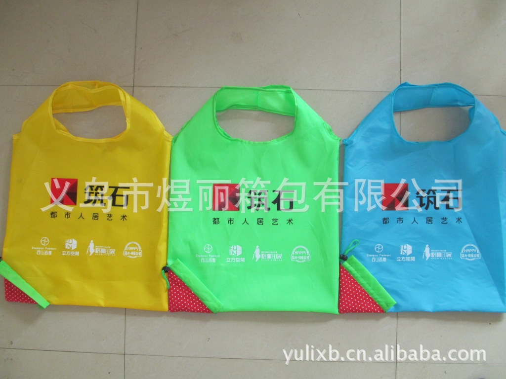 1.本公司专业生产销售各类趣味购物袋;水果购物袋,动物购物袋,卡通购物袋,尼龙购物袋,牛津购物袋等系列产品,设计新颖独特,款式精美多样。产品畅销国内外各大,小超市,小商品批发市场,并远销北美,欧美,东南亚各国等.价格在同行内绝对最低,优质的服务是您理想的选择。做工精细,价格实惠,交货及时。 欢迎广大国内外采购商前来询价。