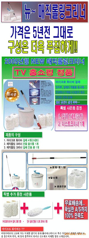 | | | | (一)乾濕兩用魔術旋轉拖把 你還在用一次只能拖一面的舊型拖把嗎????趕快把他換掉吧!! -----將拖把手柄桿一轉動,除塵滾筒即可旋轉,由一個清潔面可轉變為至少五個清潔面,即一支清潔拖把可達到至少五支拖把的清潔面積,亦則清掃一個房間只需旋轉滾五分之一面積左右即可完成,完全免去傳統拖把因髒污而必須來回清洗的時間.
