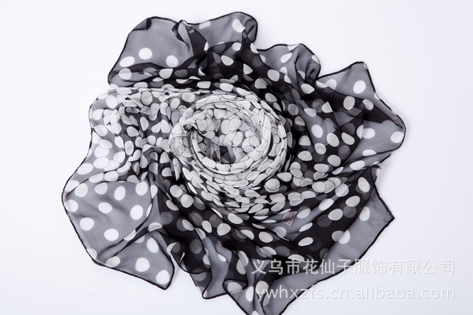 品名 :淘宝爆款 韩版时尚单色圆点雪纺丝巾 韩国乔其纱秋冬围巾厂家批发