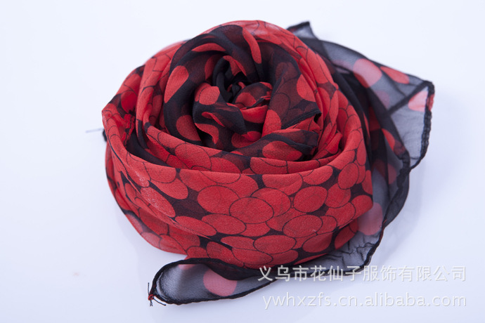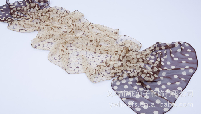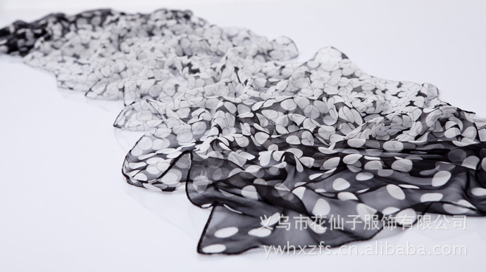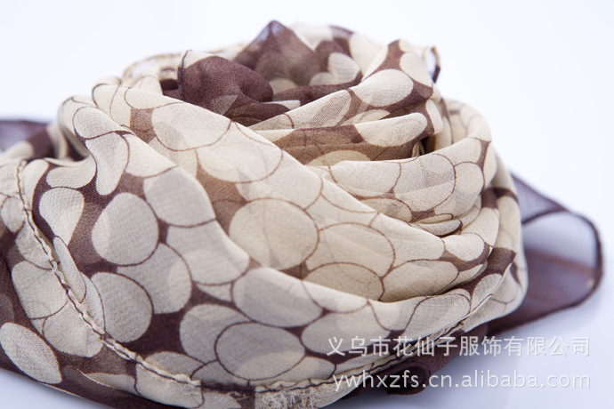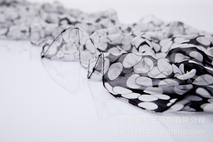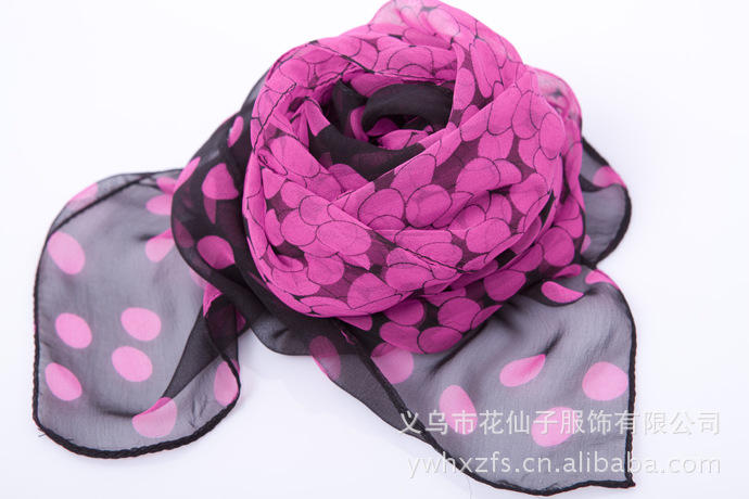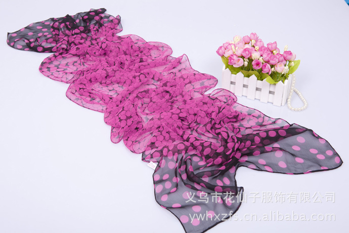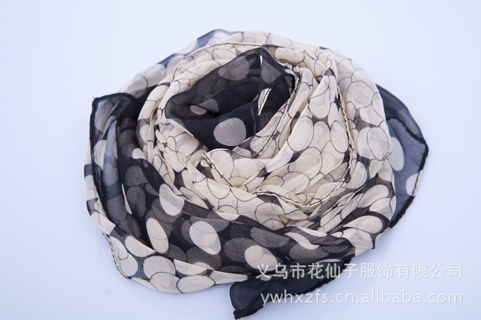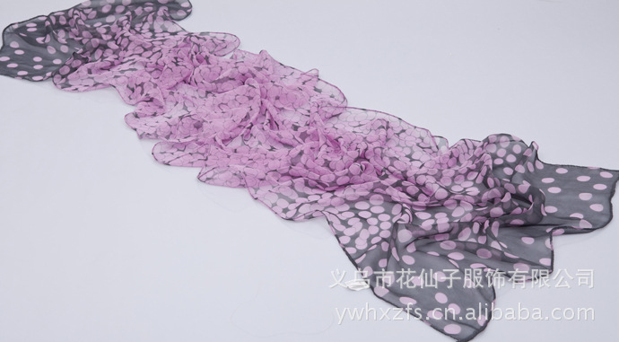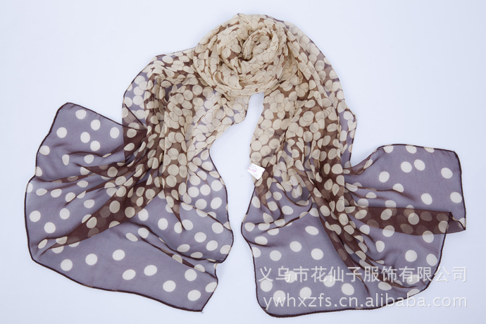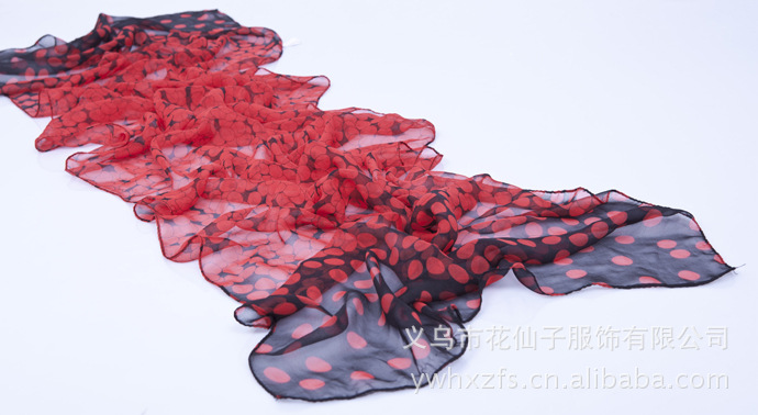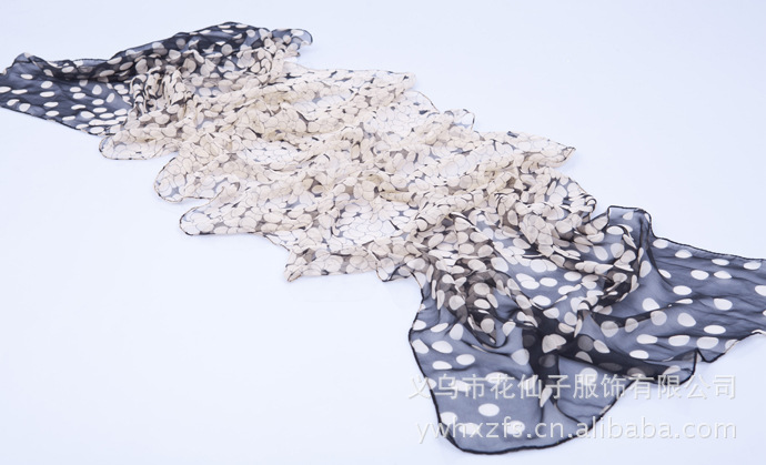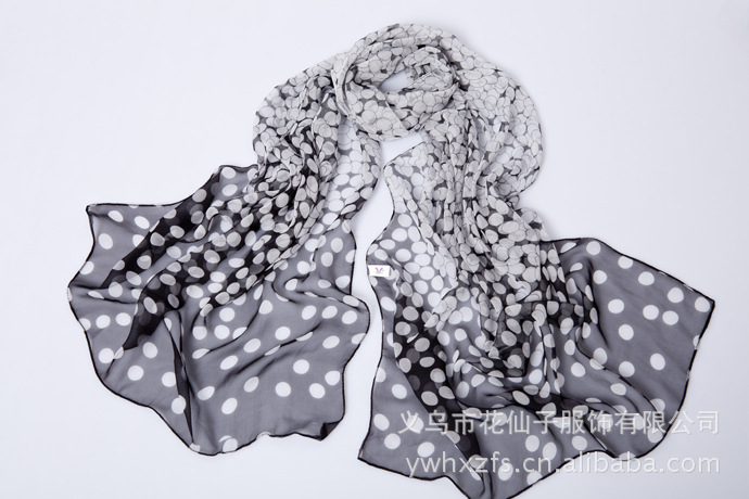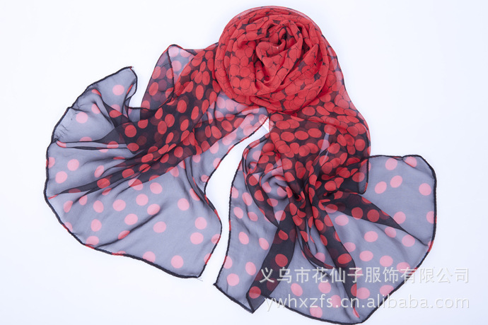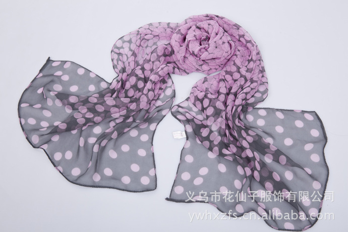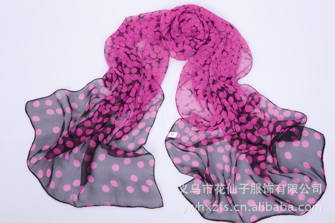 特点 : 薄形圆点丝巾,色泽鲜艳。