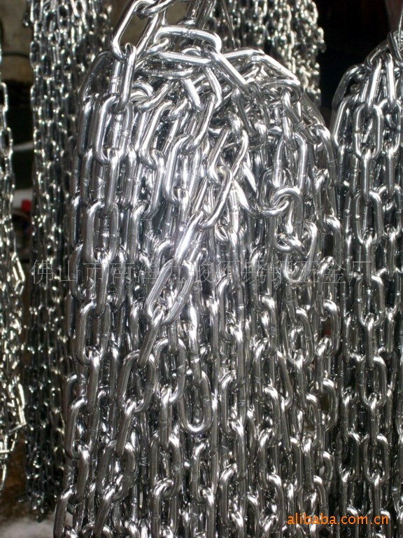 我厂专业生产不锈钢链条,不锈钢工业链,起重链,锚链,有档船用锚链,无档锚链,不锈钢船专用锚链,不锈钢护栏链,停车场护栏链,防盗链,防滑链条,装饰链,手袋装饰链条,箱包装饰链条,八字链,打结链,圆环链,钮钮,冲压扁链,四方链,狗链,宠物链,不锈钢无档锚链直径1.0mm-12mm之间有现货.以及各种五金配件:箱包配件,登山扣,弹簧扣,连接环,旋转环,开体花兰,吊环螺丝,吊环螺母,不锈钢丝绳卡头,D型卸扣,S钩,不锈钢圆环,铝套,扁钢电源插头,不锈钢球,滚珠,等等.质量有保证,价格更优惠,交期及时!欢迎广大客户订购!服务承诺:同等质量价格最低,同等价格质量最好!