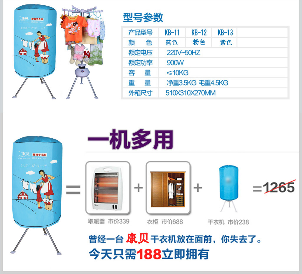 品牌:康贝KB-22 用途:家用干衣、毛巾/衣柜/取暖器