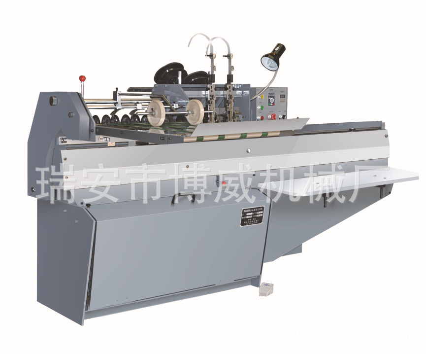 该骑马订书机机配有最新光电检测功能:最近经本厂改进,主要零配件采用数控加工,结构上采用电磁离合装置,送纸和装订部分分开为2个独立的结构,采用手动和自动可选择形式,有书本时装订,无书本时钉头停止工作,送书部分及收书部分照常工作,杜绝了国内同类机型的自动工作模式下无书贴机器全部停下来的弊病,有效的保护了钉头,同时杜绝了机器频繁启动对变频器和电机的冲击,提高了机器整体的使用寿命!做到不伤钉头,不漏订,一本也可装订!同时本机还配有变频调速自动计数功能,具有工作平稳 调速方便 操作简易 维修方便 可靠性高 装订范围大 生产效率高等优点,经人工搭页后即可自动送书 自动装订 自动收书的优点!