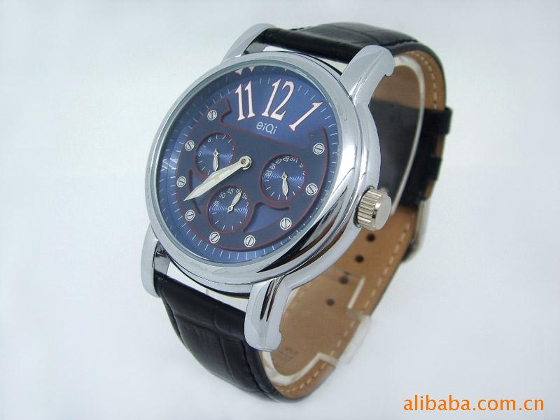 不锈钢表壳,真皮表带,进口2针石英机芯(型号3D44机芯)塑占n7