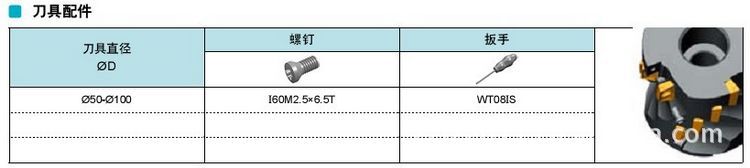 面铣刀具型号表: