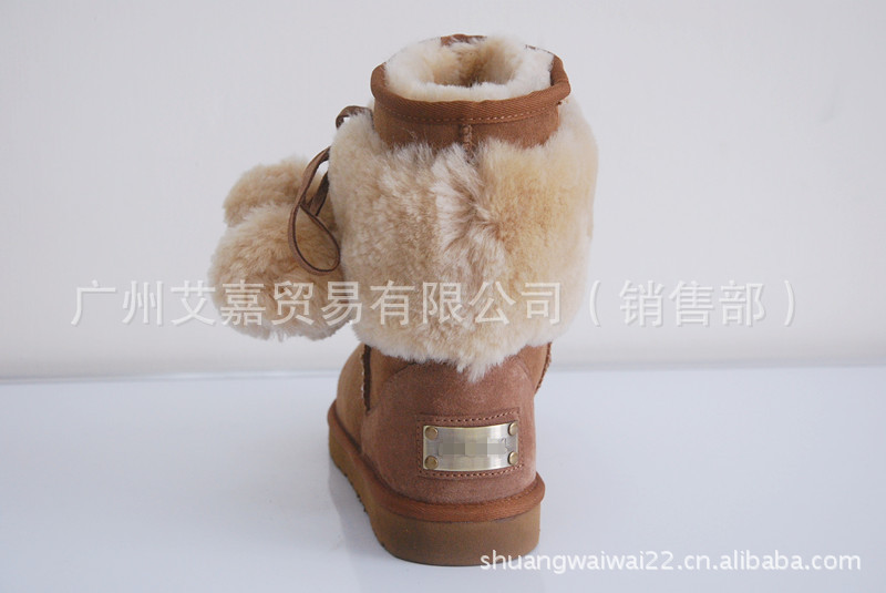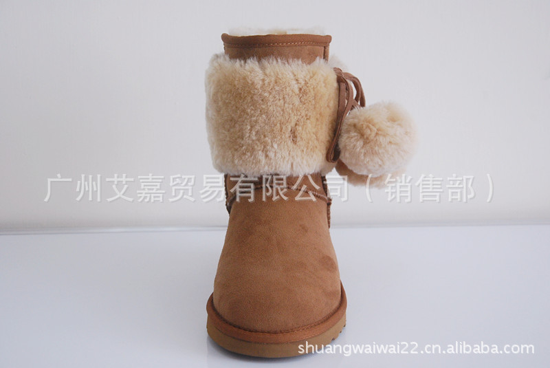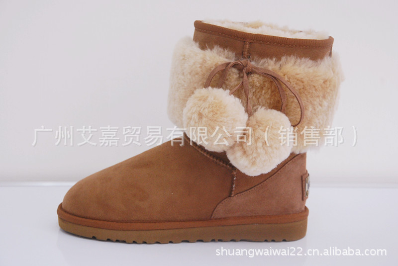 此款主要以简约大方的风格,在鞋外球球以装饰,再用真皮鞋带系起来,加上筒口的翻毛可以自由调节,非常具有青春的时尚气息。鞋垫也是16-18MM的澳洲羊毛,温暖又舒适。真羊毛透气性能高,所以保暖而不闷。
