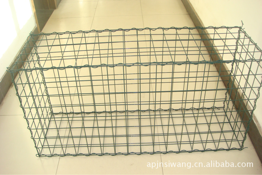 石笼网也称六角网、格宾网,是金属线材编织的角形网(六角网)制成的网箱,使用的金属线径是根据六角形的大小而不同,如果是金属镀层的金属线六角形,则使用线径为2.0mm到4.0mm的金属线,如果是PVC包覆的金属线编织的六角网,则使用外径3.0mm到4.5mm的PVC(金属)线。外框边缘的线则使用比六角网线粗一号的。
