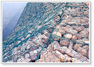 格宾系指由机编双绞合六边形金属网面构成的箱形结构 。格宾在施工现场经石头填充,构成具有柔性、透水性及整体性的结构,如挡墙、河道衬砌、堰等支挡与防冲蚀工程。格宾由间隔1米的隔板分成若干单元格,为了加强格宾结构的强度, 所有的面板边端均采用直径更的钢丝。格宾网是金属线材编织的角形网(六角网)制成的网箱,使用的金属线径是根据六角形的大小而不同.如果是金属镀层的金属线六角形,则使用线径为2.0mm到4.0mm的金属线,如果是PVC包覆的金属线编织的六角网,则使用外径为3.0mm到4.5mm的PVC(金属)线.外框边缘的线则使用比六角网线粗一号的线。控制和引导河流及洪水泄洪坝和导流坝岩崩防护防止水水土流失大桥保护固土结构海滨防御工程港口工程挡土墙道路防护。