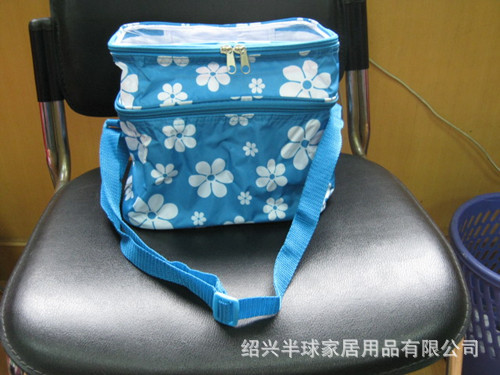 产品特点:里面铝片质量相当好,有上下两层,拉链全部为双拉链。除了铝片外,中间一层厚厚的隔热棉。防潮、柔软、体小轻便,折叠后方便携带,保温效果好,是家庭户外携带饮料最佳冰包.