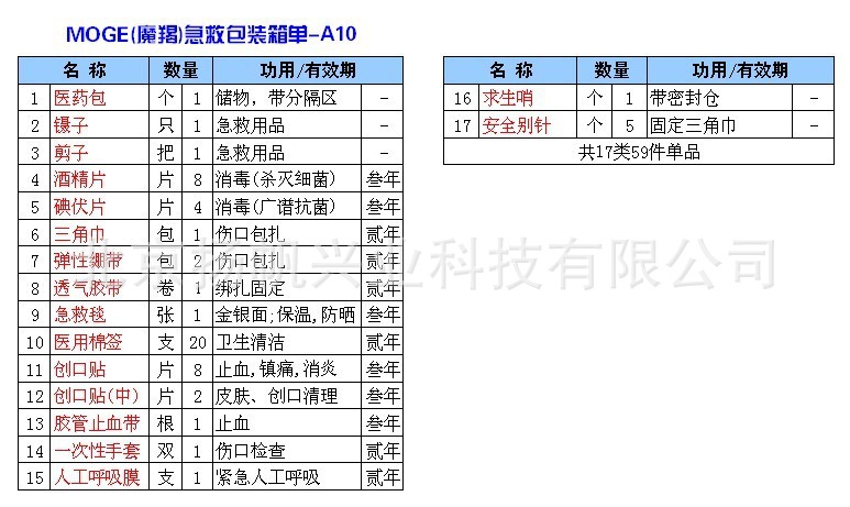 MOGE魔羯急救包里的相关单品都有正规生产许可,并配备了简要的中文说明,真正做到为每一个客户贴心着想!