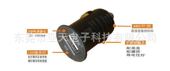 认证5V1000mA贝尔金车载充电器,MINI车载充电器,贝尔金车充