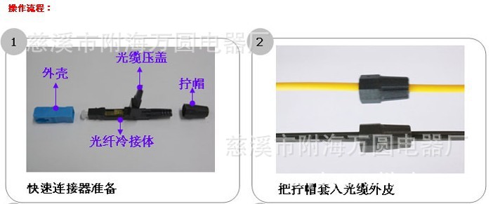 备注:本产品采用预埋光纤式结构;压接部位采用全新独特结构设计,无需注胶和研磨、低插入损耗,高回拨损耗,过高低温测试,可重复利用,现场操作简便;广泛应用于开通FTTH光纤终端成端。