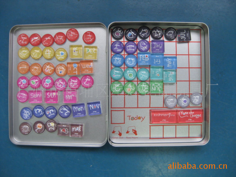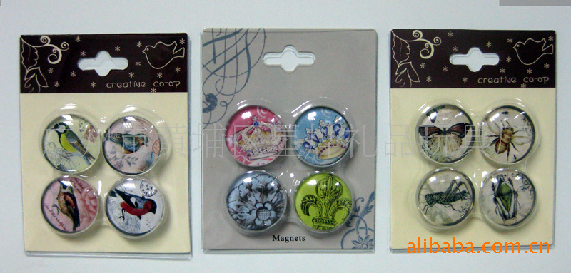 9)马口铁冰箱贴:采用磁铁+马口铁+铜版纸印刷腹膜制作而成。