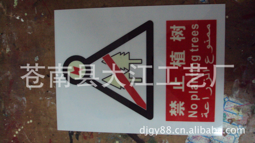 4、夜光标志牌(材料有铝质夜光、PVC夜光、不锈钢夜光)又称蓄光标志牌、自发光标志牌和长余辉标志牌,就是在材料的表面上直接用夜光漆丝网印刷或贴夜光膜再丝网印刷而成的标志牌。是一种吸收太阳光、灯光等光源的光线后在无光源的情况下可以自己发光,具有优秀的应急自动发光能力,有效地增强人的识别能力,看清目标,引起警觉,为黑暗中的行人或夜间作业人员提供最有效、最可靠的安全保障。本产品激发时间短,发光和余辉时间长,亮度高,极稳定的物理和化学属性,极强环境适应性,极长的使用寿命,安全可靠,节约能源,绿色环保被广泛地应用于城市导视系统中,例如目前的城市道场所和需要起夜光效果的企业等。
