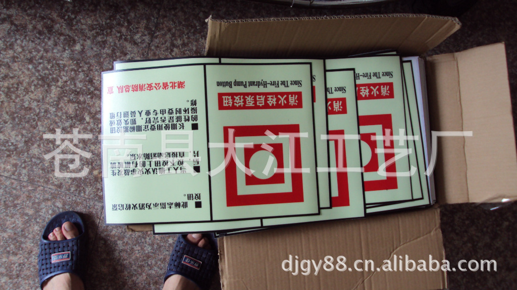 苍南县大江工艺厂,位于中国商标文化城,中国标牌包装制作营销中心----浙南海滨重镇金乡。是安全牌、安全标志牌、交通标志牌、道路指示牌、反光标牌、搪瓷牌、夜光牌、禁止标志牌、警告标志牌、消防夜光标志牌、电力安全标志牌、保护标志牌、矿山安全标志牌、电力电厂警示牌、危险品标志牌、磁性材料卡、指令标志牌、通信标牌、铜铝标牌、门牌、楼牌、高光牌、不锈钢牌、铝合金标牌、滴胶铭牌,纪念章,铭牌等标牌的专业生产企业。我厂坚持“人才先导,科技兴业”的治厂方针,全体员工依靠科技进步,积极推进高新技术开发,现已形成一个技术力量雄厚,员工素质高的专业型新兴企业。标志牌按GB2894-1996《安全标志》、 GB14161-1993《矿山安全标志》、GB13495《消防安全标志》、GBZ158-2003《工作场所职业病危害警示标识》、GB13609-1992《常用危险化学品标志》、GB190-1990《危险货物包装标志》、GB5768-1999《道路交通标志》、《电力生产企业安全设施规范手册》、《发电企业安全设施配置规范手册》、《电网安全设施规范配置应用手册》、等GB国家最新标志和国家电力公司最新修订版的《电力安全标志》的图案严格印制而成。材料有PVC不干胶、PVC塑料、铝质、搪瓷、不锈钢、夜光、反光和亚克力、等多种材料以满足不同用户的需要。本产品耐酸碱、抗腐蚀,在野外经风吹雨打,不会褪色。设置在厂矿、建筑工地、电力设施、交通运输等应注意安全场所,向人们敲响安全警钟,是企事业单位做好安全管理,安全生产知识宣传工作的得力助我厂一贯坚持“质量第一、信誉至上、服务周到、价格合理”的宗旨。热忱欢迎广大新老客户来函。来电订货、垂询。手13958784824。 邮箱:djgy88@ 。 网址:/