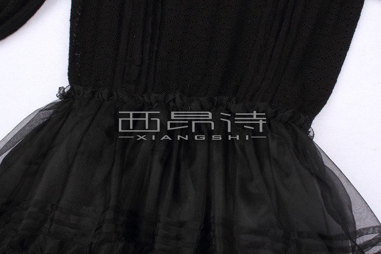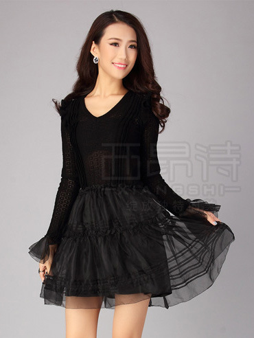 D_4535 正品连衣裙长袖针织羊毛真丝拼接连衣裙LQ012天猫货源