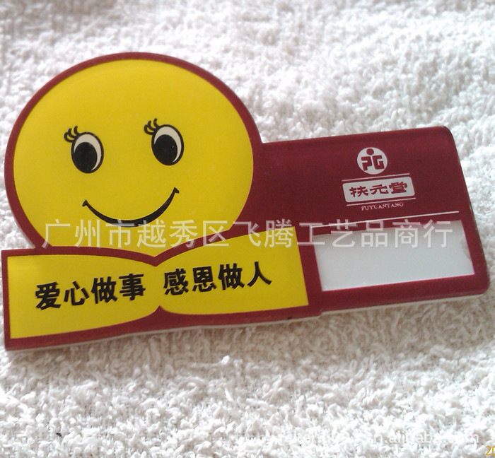 胸牌是一种悬挂或串扣于上衣左方的一种编号或介绍小标牌,大多数佩戴在西装、正装、西服上的徽章,起到一种介绍的作用,胸牌上面可以放企业名称、企业LOGO、姓名、编号、职务、所属部门、企业形象等一种或多种,由于胸牌规格比较小,所以上面内容尽量简写