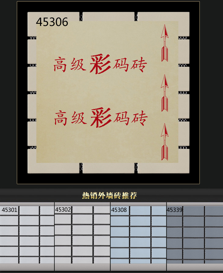 外墙砖尺寸(毫米):73*73,45*145,45*95,45*195,60*240,100*200,112*255,140*280,150*300,200*400