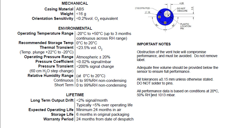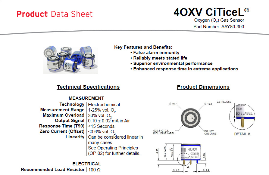 4SPE O2 氧气气体传感器 O2 气体传感器