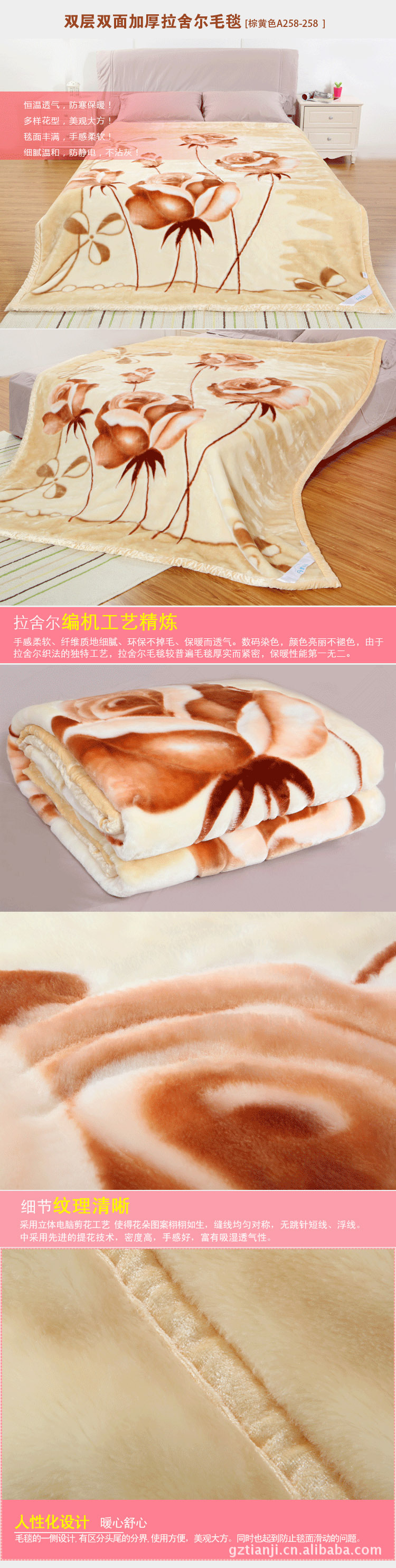 米黄色拉舍尔高级双层毛毯 秋冬加厚保暖碎花毛毯床垫 180cm