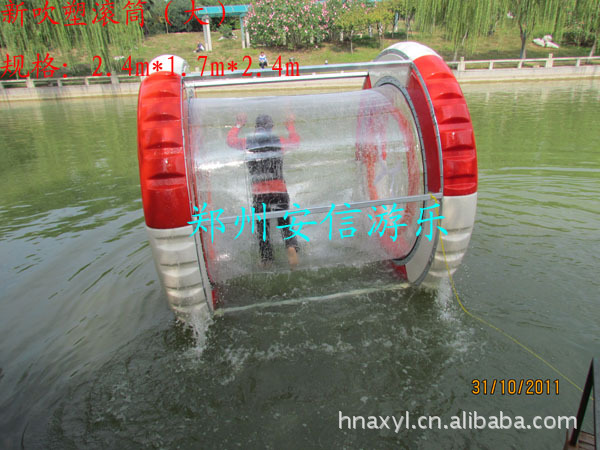 1、 安全:开放式空心圆管型结构设计,空气流通,运动时不用担心时间的限制;3个独立的气室,使气囊在水中滚动时更安全;两端圆环形的盖,可有效防止游人在滚筒倾斜时滑落水中,并在一端配有拉绳,可以控制滚筒运行距离。