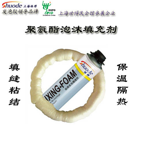 聚氨酯泡沫填充剂全称单组分聚氨酯泡沫填缝剂俗称发泡剂、发泡胶、PU填缝剂等,英文简称PU FOAM英文全称是 Polyurethane foam sealing agent是气雾技术和聚氨酯泡沫技术交叉结合的产物。它是一种将聚氨酯预聚物﹑发泡剂﹑催化剂等组分装填于耐压气雾罐中的特殊聚氨酯产品。当物料从气雾罐中喷出时,沫状的聚氨酯物料会迅速膨胀并与空气或接触到的基体中的水分发生固化反应形成泡沫。固化后的泡沫具有填缝﹑粘结﹑密封﹑隔热﹑吸音等多种效果,是一种环保节能﹑使用方便的建筑材料, 可适用于密封堵漏﹑填空补缝﹑固定粘结,保温隔音,尤其适用于塑钢或铝合金门窗和墙体间的密封堵漏及防水。
