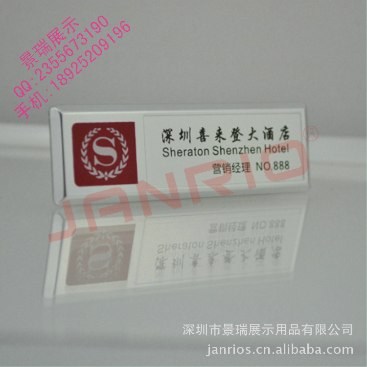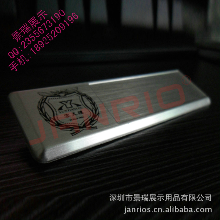 工艺:常规金银两色,其它颜色可定做,表面阳极处理,LOGO、姓名、职位、编号可插纸片或者丝印或者贴膜更换