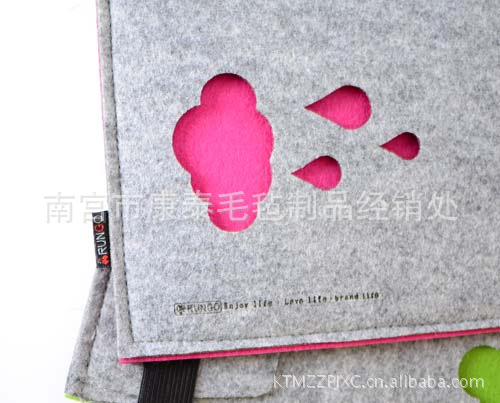 ③毛毡产品易清洗,若小面积脏污,只需用湿布轻轻擦拭即可。大面积脏污可以干洗,一般不建议水洗,因水洗后不加注意,很容易使得包包变形。水洗完不可烘干、悬挂晾干、扭杆、甩干,应自然阴干,使用熨斗温度不得高于110℃ 。