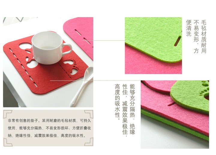 【宝贝名称】:创意时尚多用垫/杯垫/碗垫/隔热垫/盘垫/餐垫/毛毡装饰