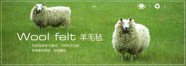 毛毡采用天然羊毛制成,它不采用经纬交织而利用羊毛的缩绒特性经粘合而成,主要特征: