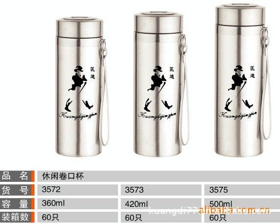 【信息标题】:供应专业生产双层不锈钢保温杯!休闲保温杯!【货品名称】:匡迪休闲卷口杯