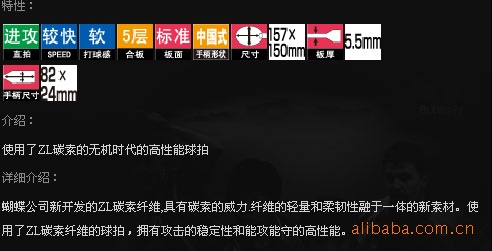 蝴蝶公司新开发的ZL碳素纤维,具有碳素的威力.纤维的轻量和柔韧性融于一体的新素材。使用了ZL碳素纤维的球拍,拥有攻击的稳定性和能攻能守的高性能。