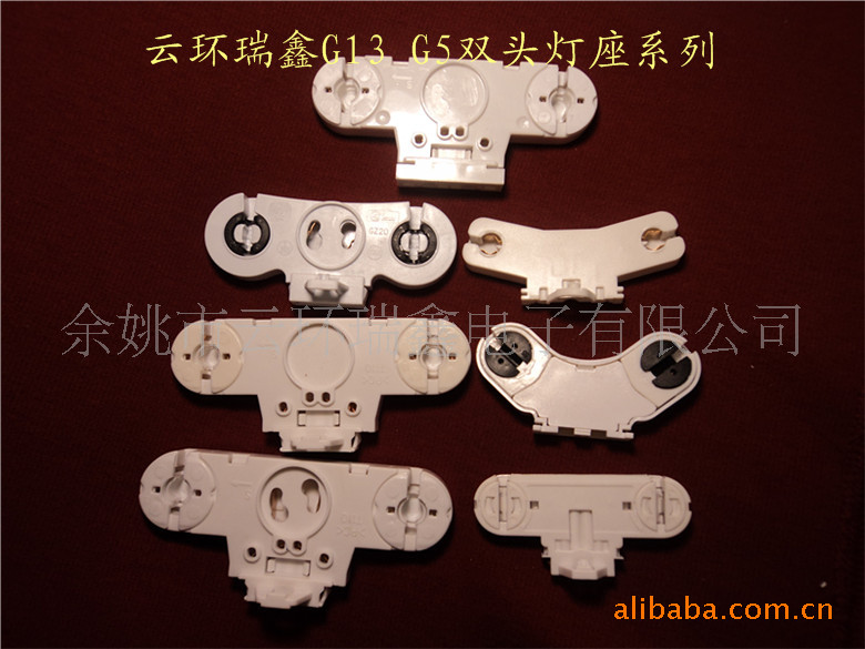 我公司生产的其他部分产品如下图,详细信息请点击另页:余姚市云环瑞鑫电子有限公司成立于1993年,位于杭州湾跨海大桥的西南10KM,南临329国道,交通十分便利。本公司专业开发生产灯具配件系列,是国内最大的荧光灯灯脚生产基地,成立至今已和国内国外的多家知名厂家合作。如:松下,飞利浦,阳光,三雄,欧普,雷士等。自1993年以来我们致力开发T8、T5、2G11,2G7,G23,G10Q等灯脚,BJB自锁接线柱系列、G24,26W、18W、13W节能灯座系列.近几年新开发了高效防水灯座、T5、T8双管系列.大部份产品通过3C 、UL、VDE,TUV等认证.近几年为推广节能产品,特意开发多款新颖高效适配于T5灯管灯具配件。最近为适应欧盟等国的ROHS的要求,新增添多台检测设备,迎合不同客户提出的多种测试要求!我司的快发货,高品质,优服务在同类行业中公认。电话:13857830619,0574-62161719;传真:0574-62164116;