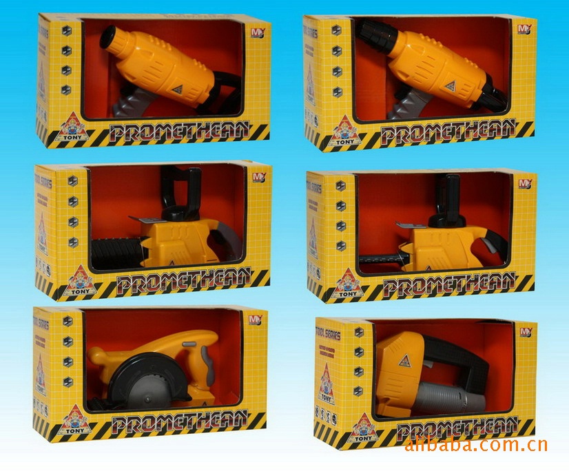 搭配以下电钻、电切割机等6款产品,(只需装上2节5号电池即可转进转出螺丝帽,模仿切割等等仿真玩法,很好玩,很逼真)