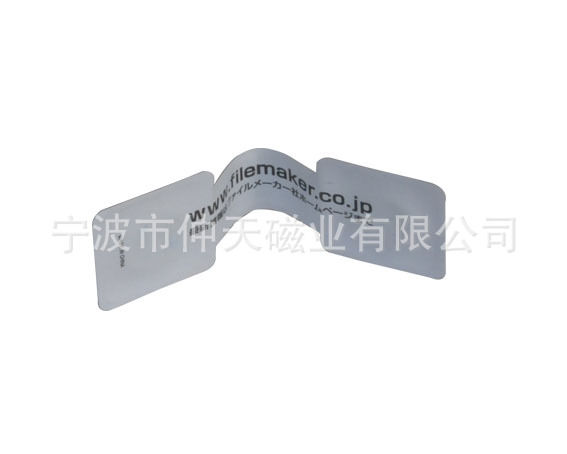 2) 磁性书签:采用下面软胶磁铁(对吸磁)+上面铜版纸铜版纸或PVC四色印刷腹膜对折制作而成。