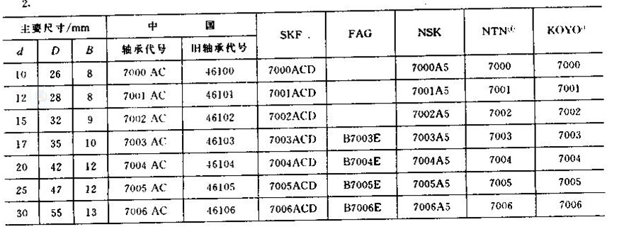 这类轴承的装球数量比深沟球轴承多,因而负荷能力大,刚性也强,运转平稳。可以利用内外圈相互位移调整将向游隙。可将几套轴承组成一个支撑,提高系统的刚性。另一特点是在正常工作状态下,钢球与内圈和外圈沟道接触点的法线与轴线的垂直平面呈一个夹角(a),即接触角,接触角的大小,决定轴承工作时所能承受的径向负荷和轴向负荷的大小。接触角越大,承受的轴向负荷能力也越大。轴承的接触角通常有: