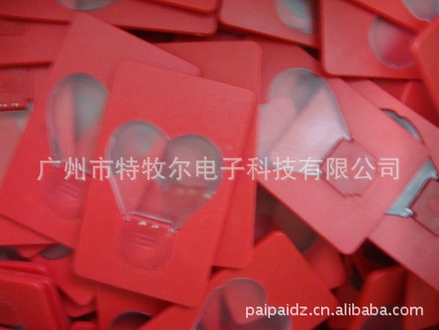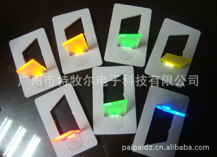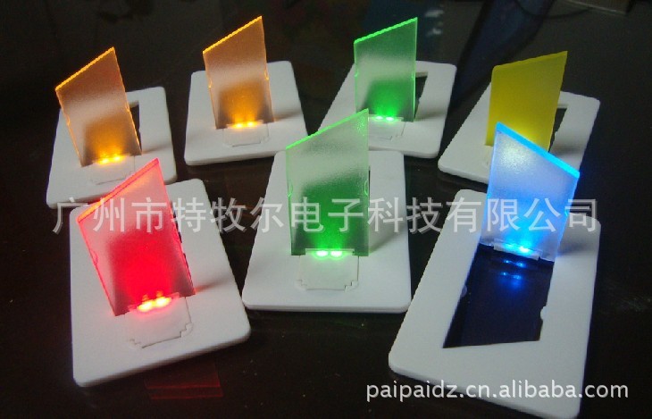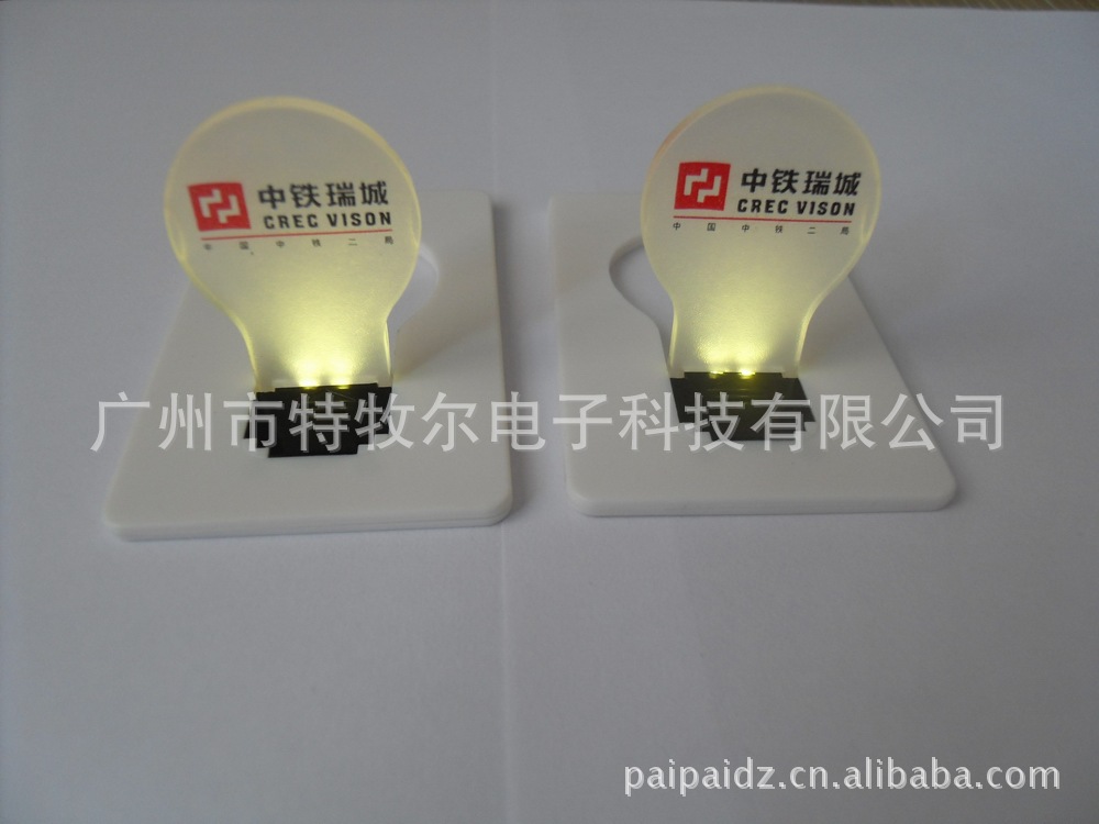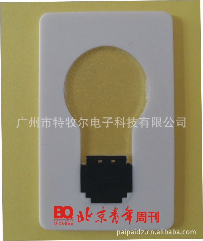 LED卡片灯采用LED作为发光源,采用高容量纽扣锂电池,所以可以做到和卡片一样轻薄。卡片中间灯泡形状的镂出部分向上翻折,LED就会被点亮,整个灯泡部分就会通体发光,如同一盏微型LED台灯立在桌面上。不用的时候只要合并上,LED就会自动关闭,就又变回一张卡片,就是如此简单。