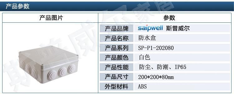 斯普威尔 150*200*130塑料防水防溅盒 电源插座底盒过线盒 密封盒