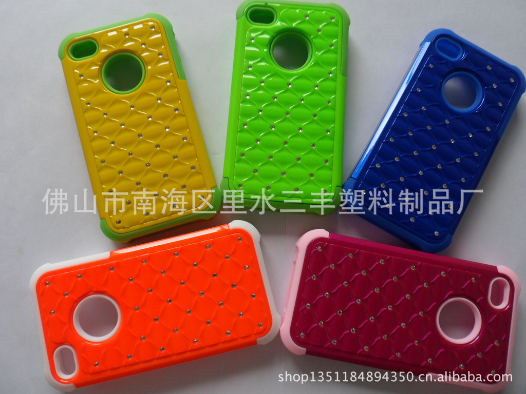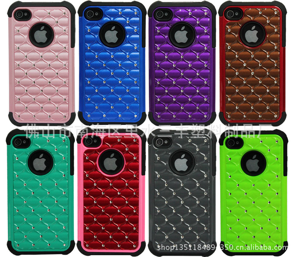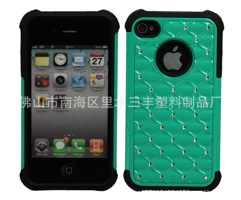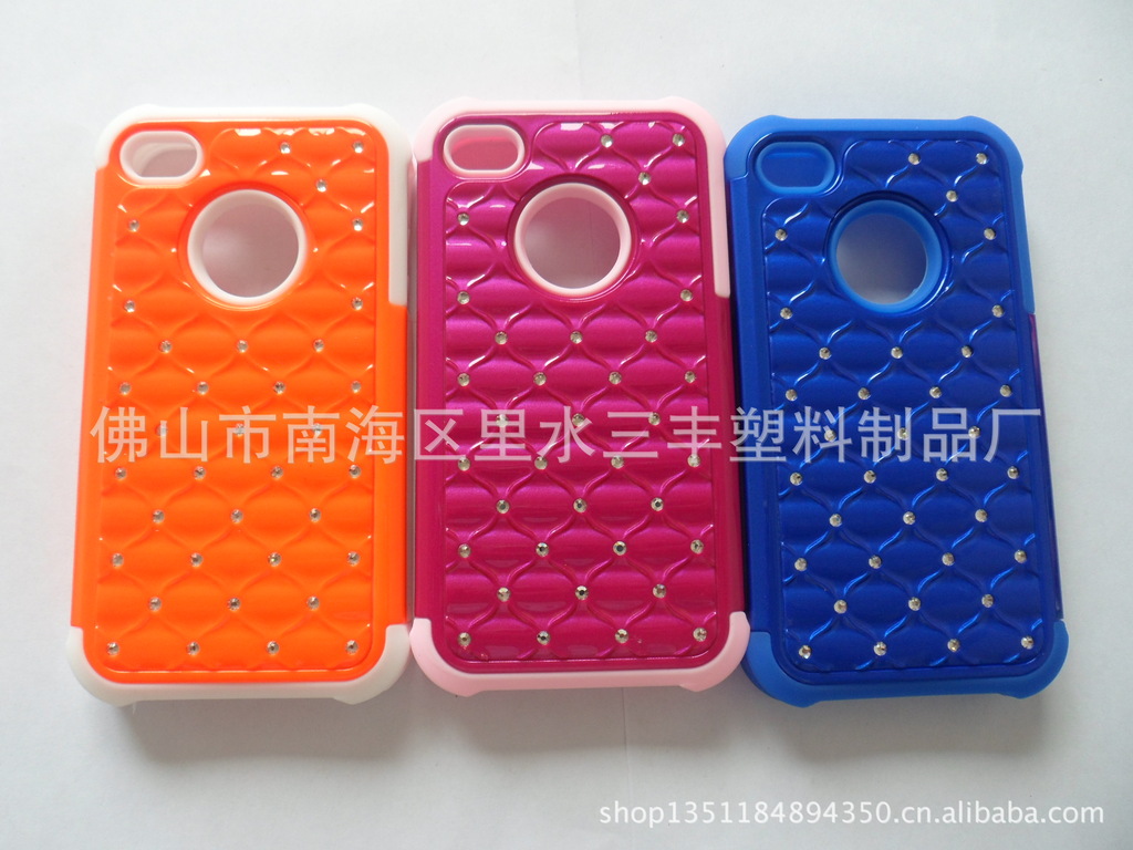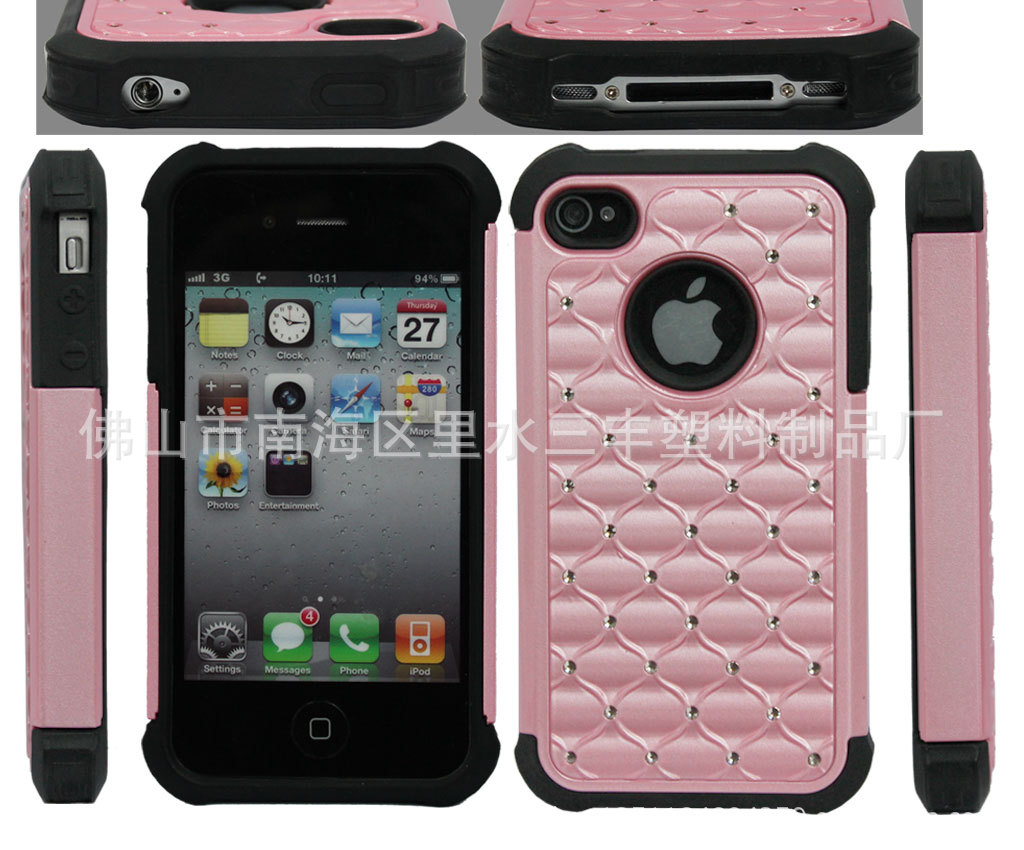 【工厂直销】苹果iphone4 三合一手机保护壳,满天星镶钻保护套