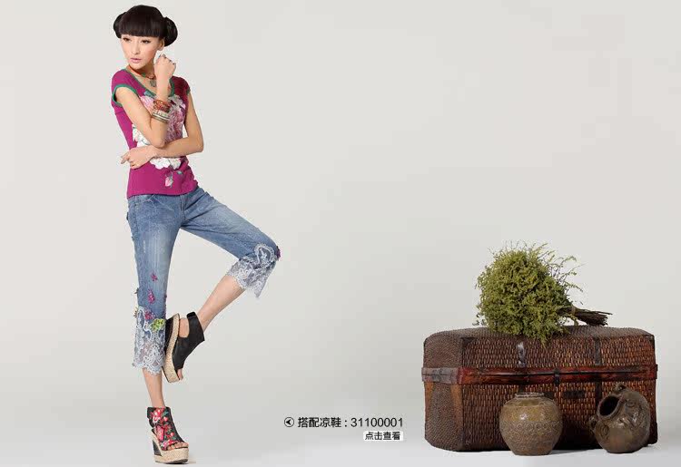 裂帛同款2013民族风秋冬装新款哈伦牛仔裤小脚靴裤女24170018花巢