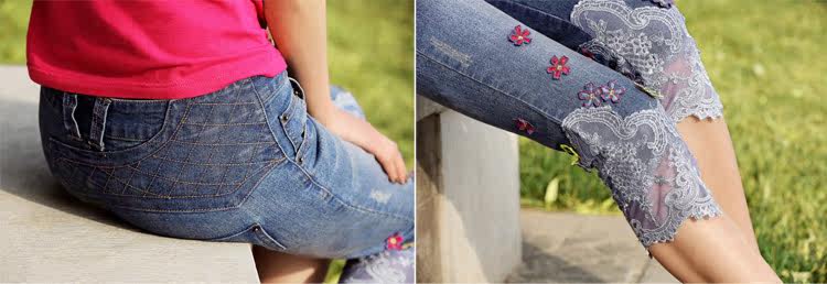 裂帛同款2013秋冬新款女装 绣花 织贴布破洞牛仔长裤24170022