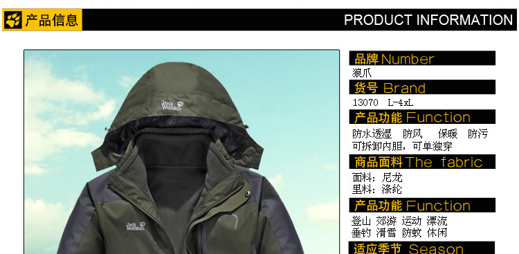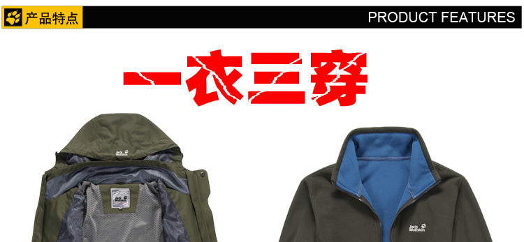 冲锋衣批发 JKW冲锋衣男装两件套 情侣款三合一男冲锋衣 登山服