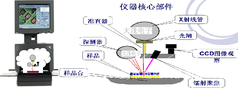 于:测厚、RoHS检测、材料分析、密度测量、元素分析、X光衍射、荧光分析、X射